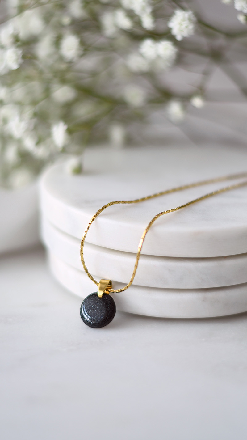 Pre vysokú lesklosť, odolnosť a elegantný vzhľad je prívesok zaliaty lesklou živicou.