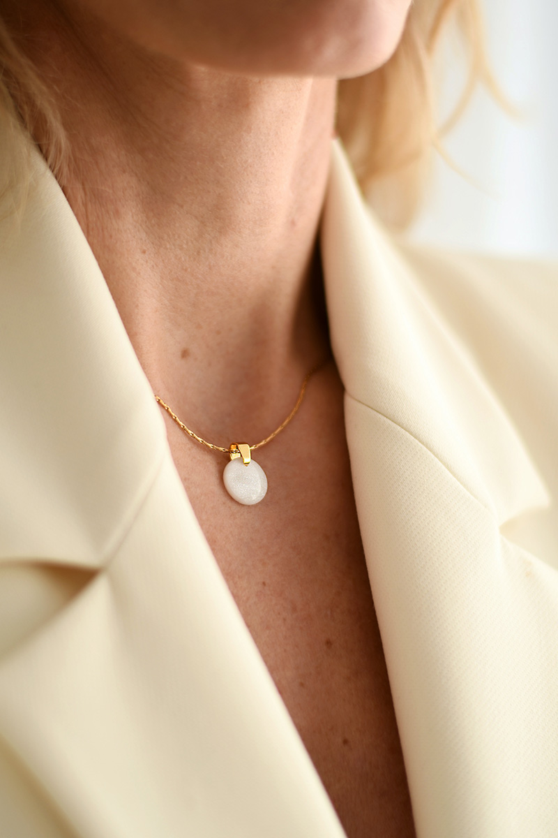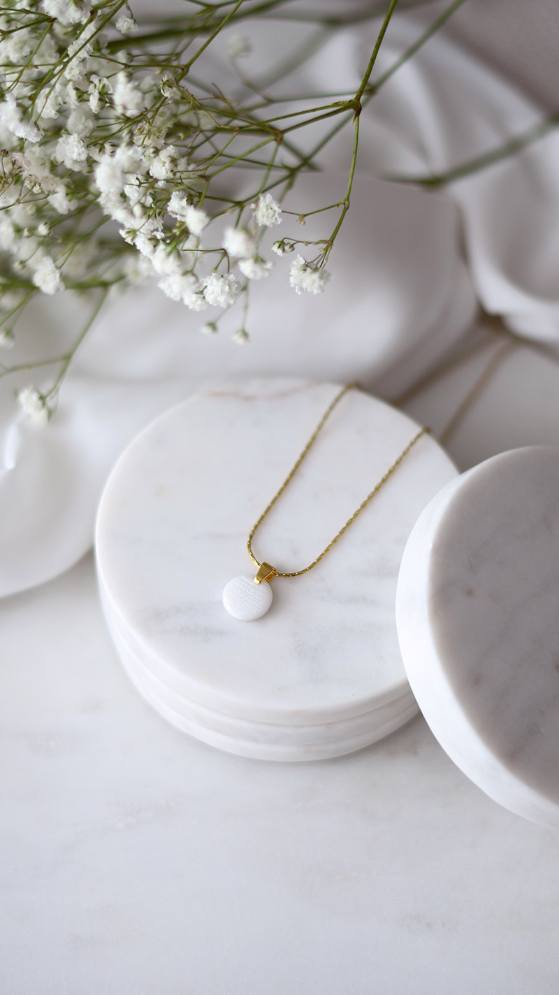 Jemný a elegantný náhrdelník „Dots“ v bielo perleťovej farbe.