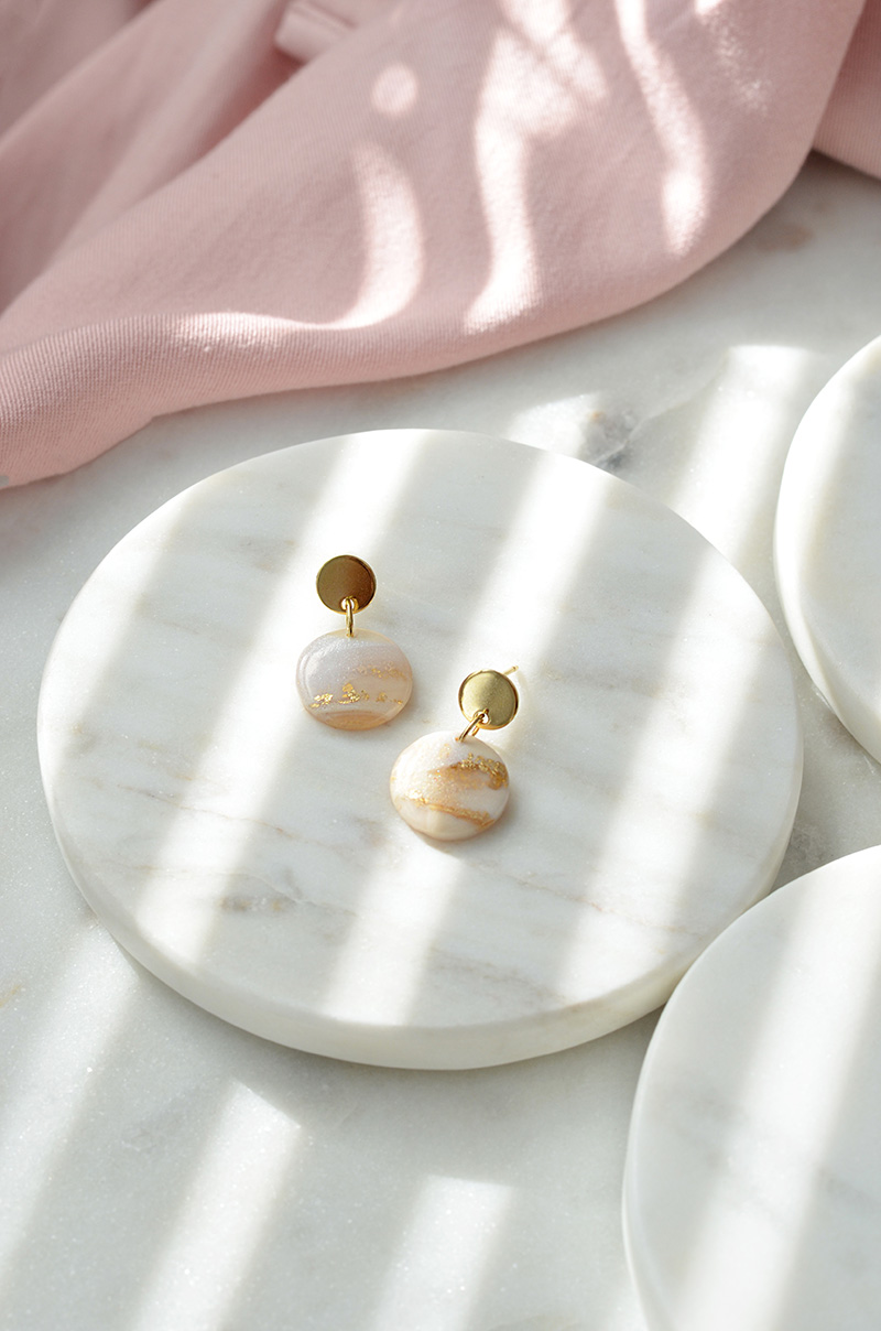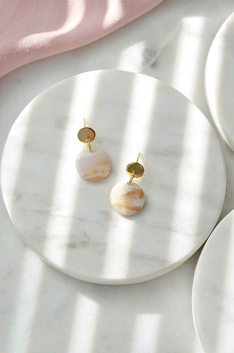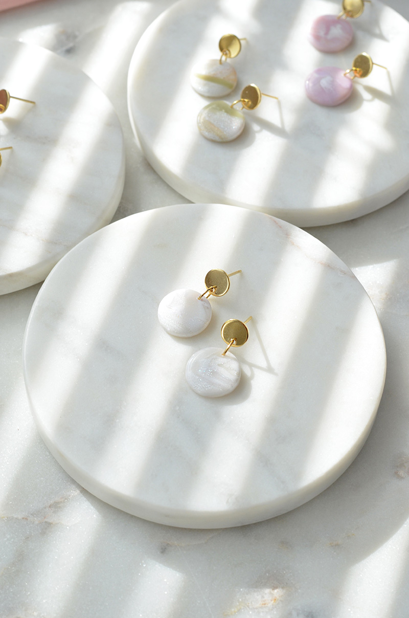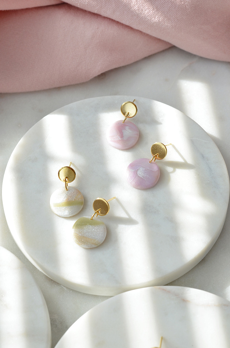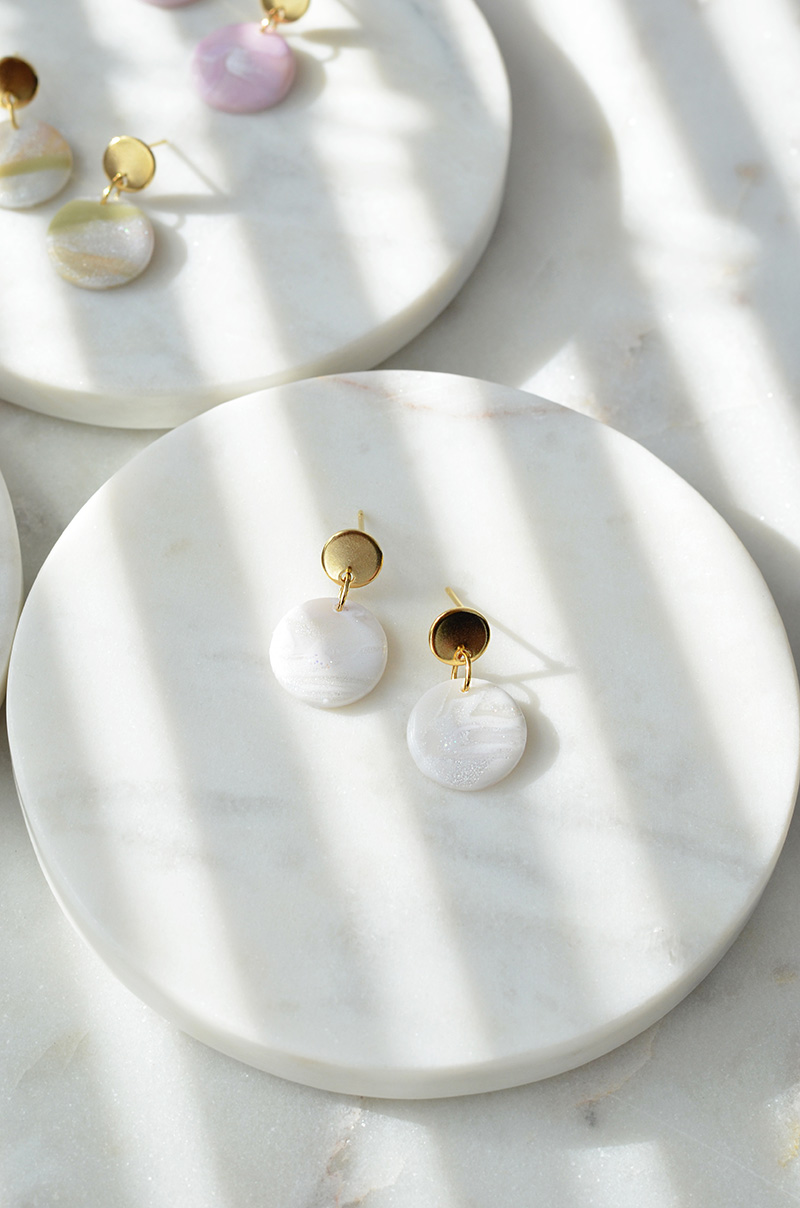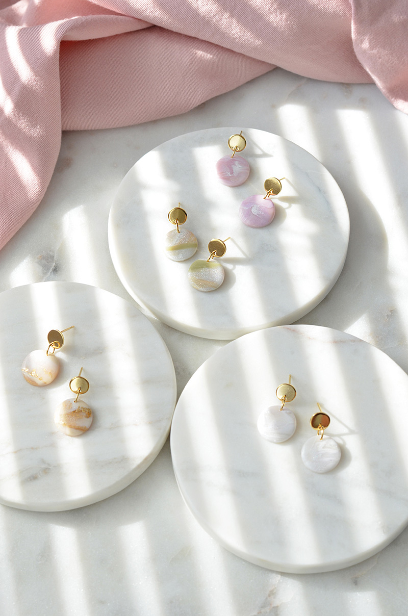 Napichovacie náušnice DOTS Mini sú ručne vyrobené z polymérovej hmoty.