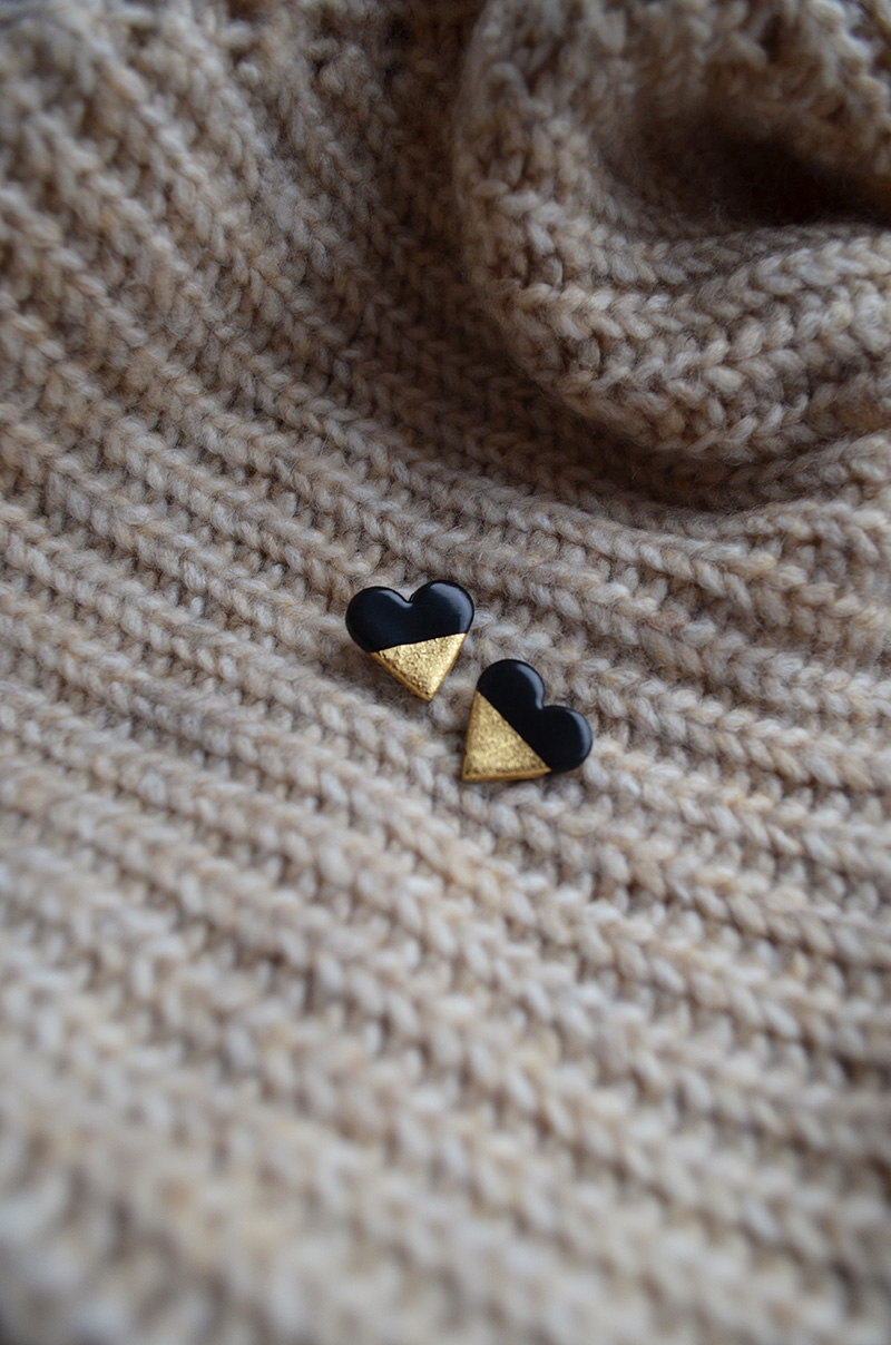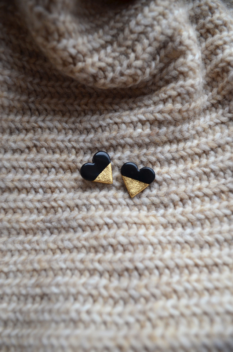 Napichovacie náušnice GOLDEN srdce II sú ručne vyrobené z polymérovej hmoty.