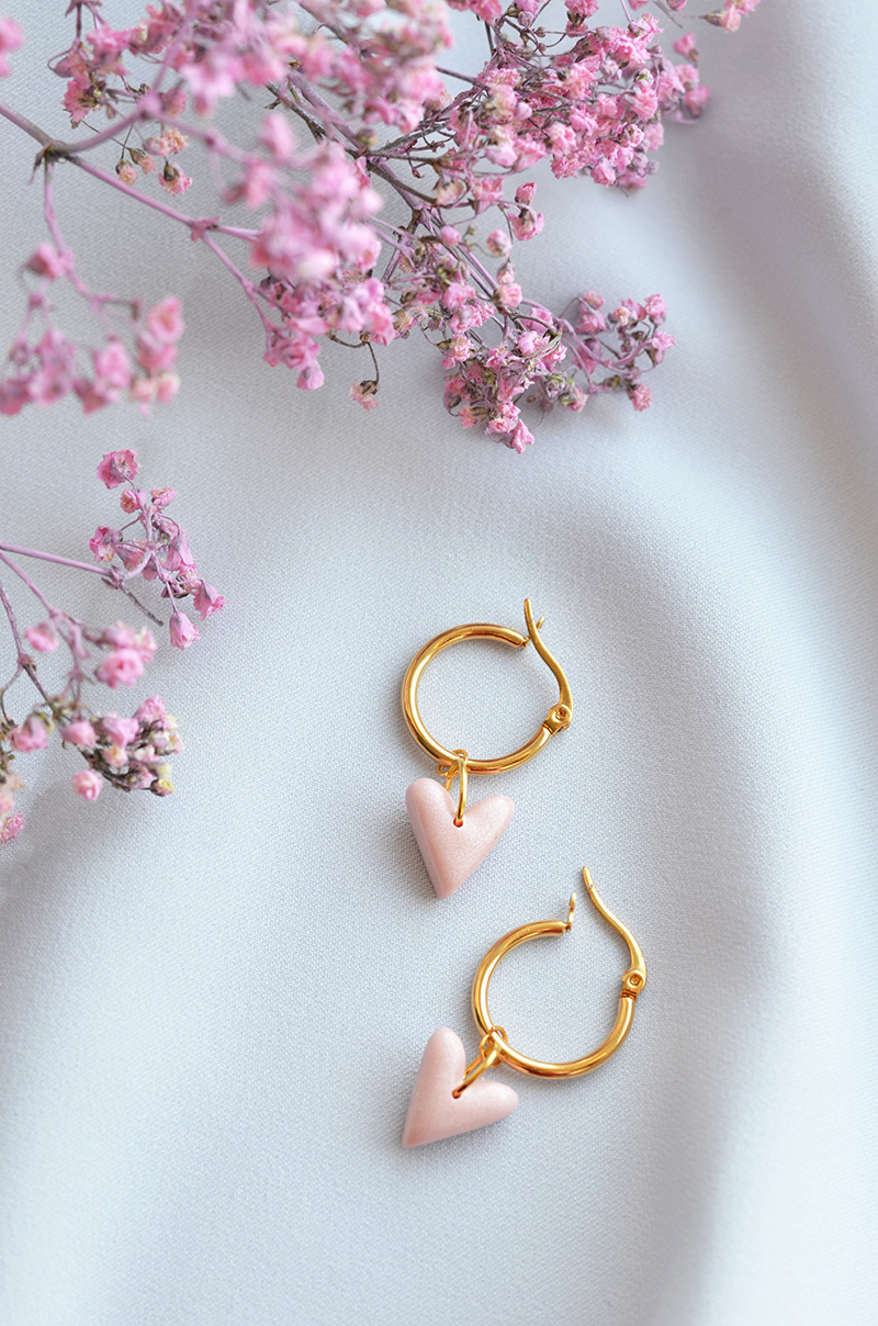 Napichovacie náušnice PRIMAVERA Heart Rose sú ručne vyrobené z polymérovej hmoty.