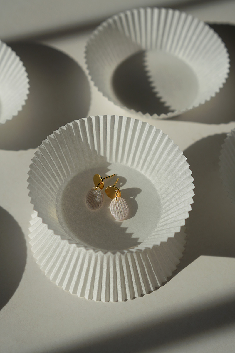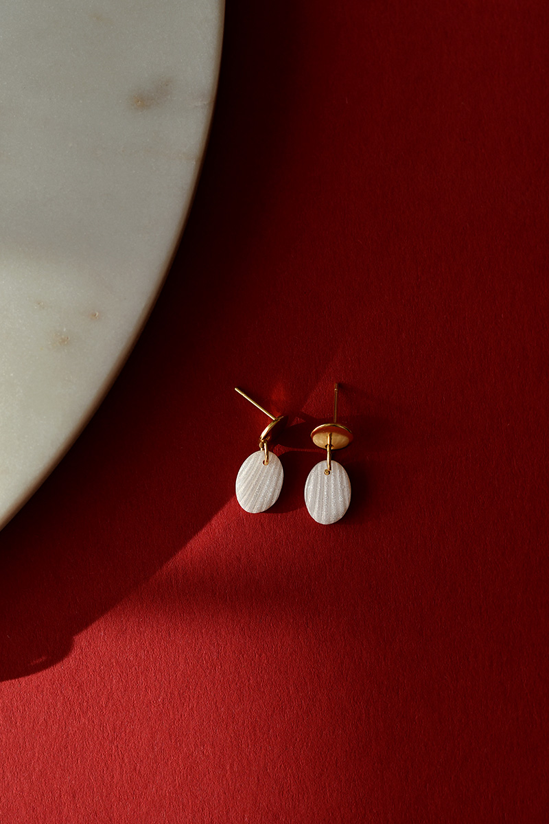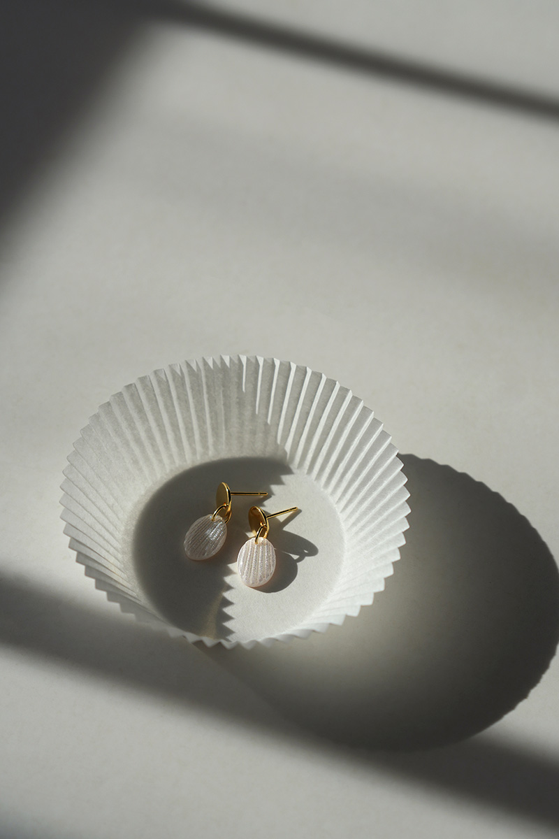 Náušnice sú v perleťovej farbe s mušlovou štruktúrou.