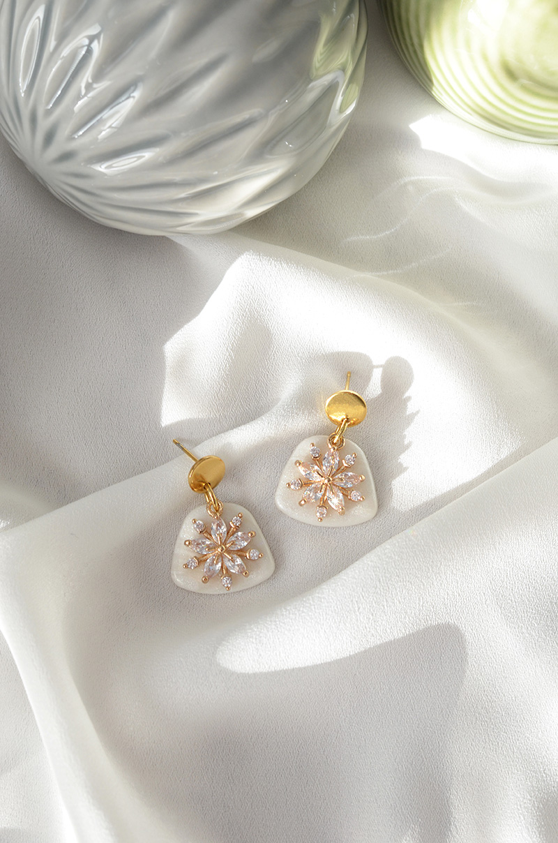 Náušničky sú v perleťovej farbe doplnené o prívesok hviezdičky so zirkónmi, ktorý sa nádherne trbliece.