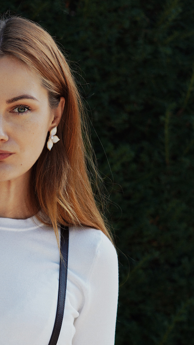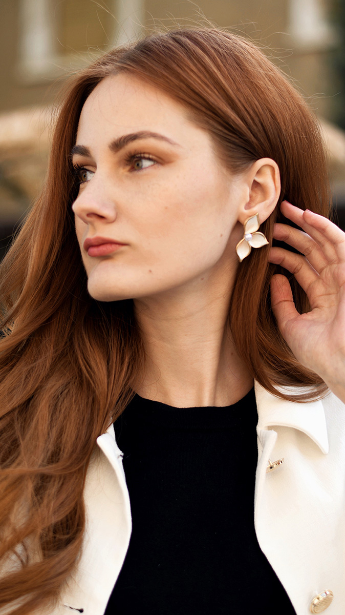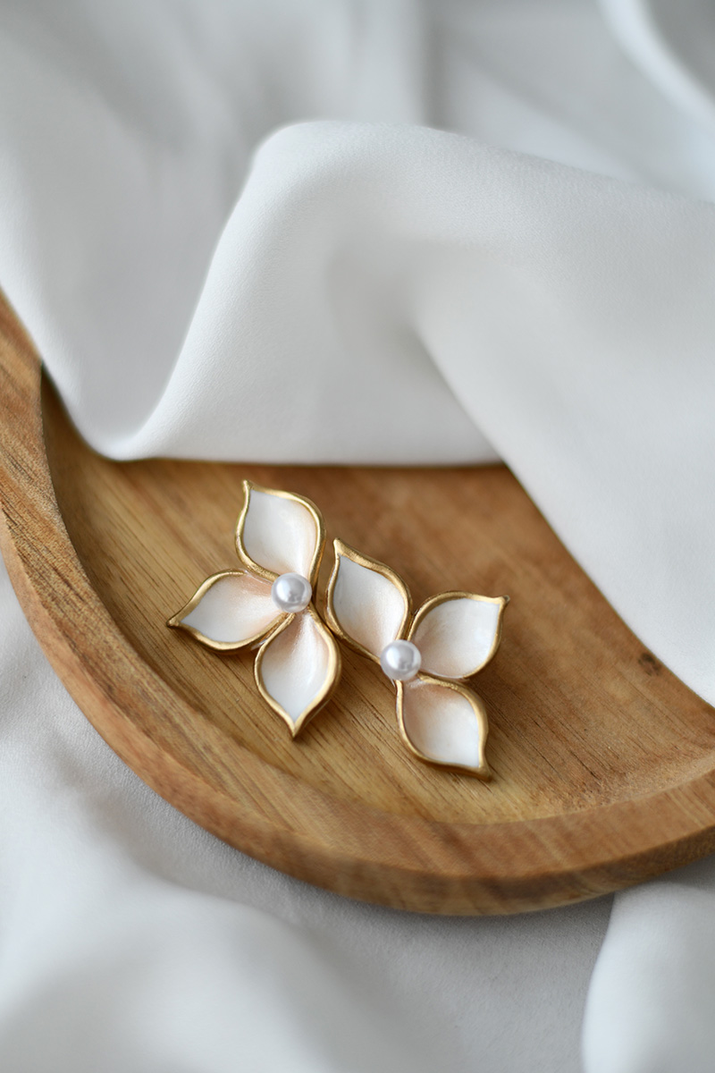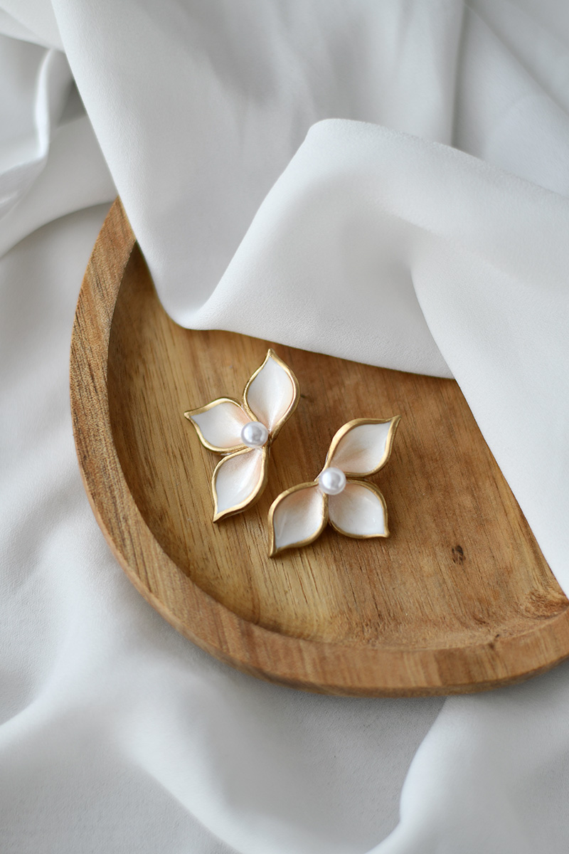 Náušnice sú ideálne na letné dni, ale tiež aj na svadbu alebo podobnú príležitosť. Perleťová farba v kombinácii s trblietkami vám zaručí, že si vás každý všimne.
