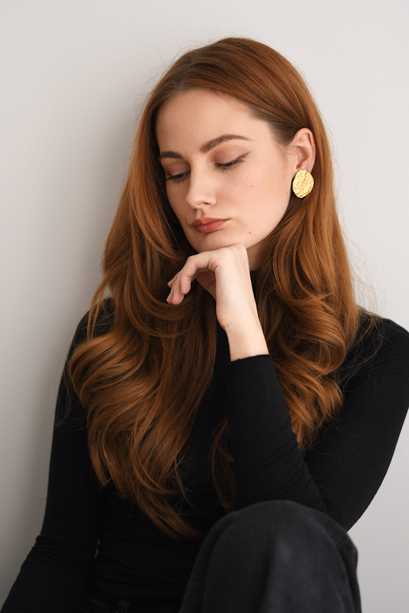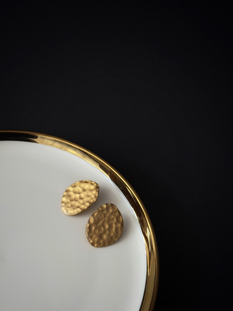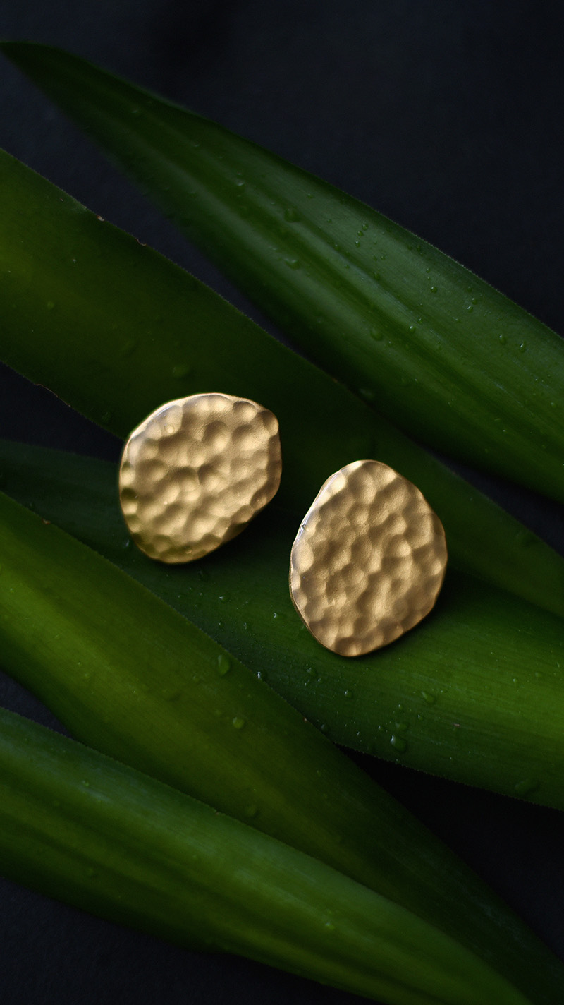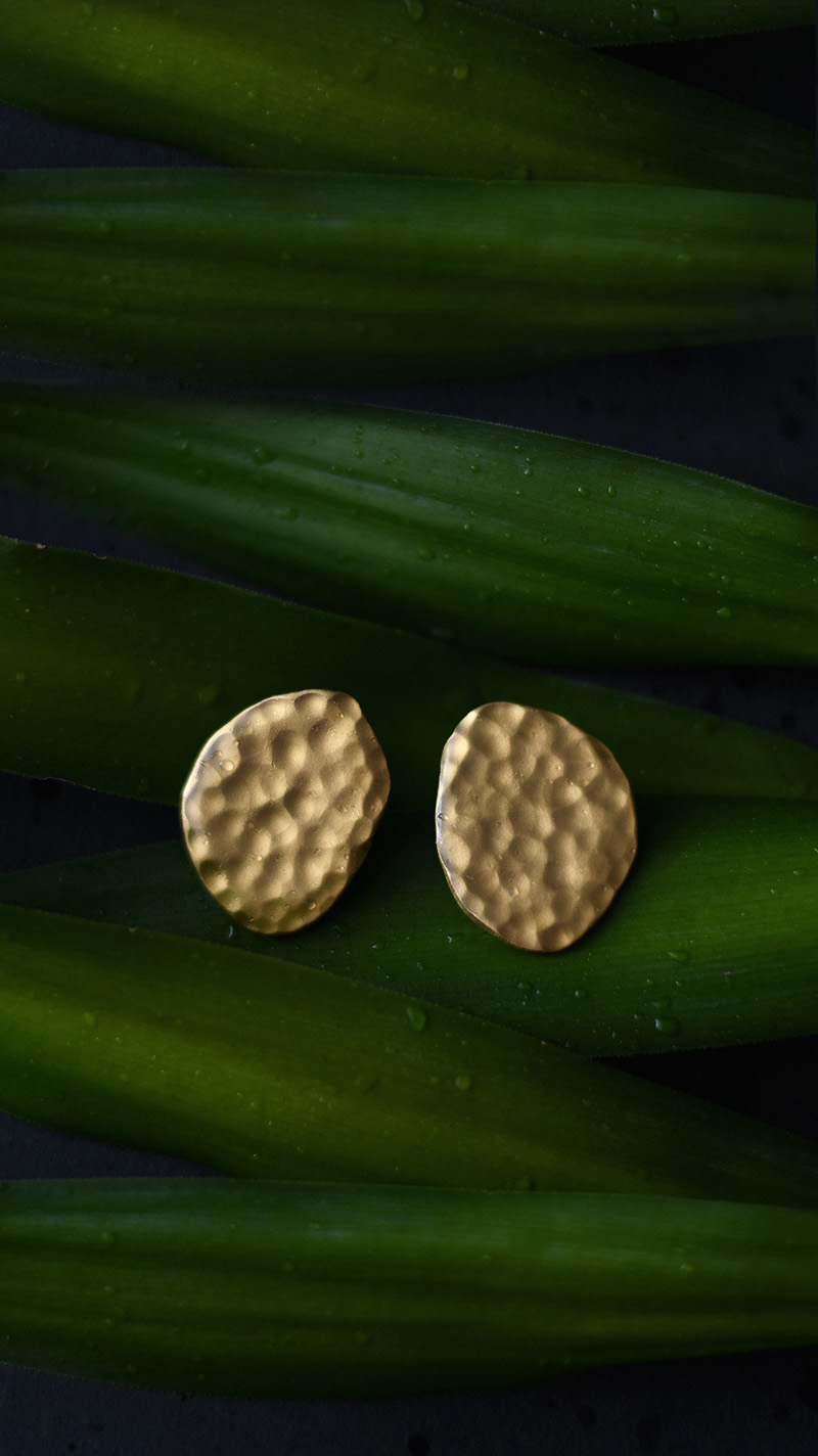 Polymérové napichovacie náušnice v organickom tvare s tepaným efektom. Náušnice sú vo výraznej zlatej farbe takže na svetle naozaj krásne vyniknú.